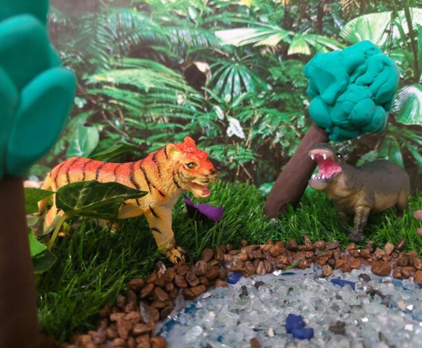 Missä asuu leijona? Miltä näyttää sammakon koti? Luo kotimaisema pienelle eläinfiguurille. Dioraama on osittain kolmiulotteinen maisemamalli tai asetelma, joka esittää esimerkiksi tilannetta luonnossa. Pajassa niitä valmistetaan kenkälaatikoita, värillisiä kartonkeja, valokuvia ja kaikenlaista pikku tilpehööriä hyödyntäen. Dioraamat jäävät täydentämään näyttelyä viikon ajaksi. Voit tulla noutamaan oman työsi näyttelysalista ma 9.3.