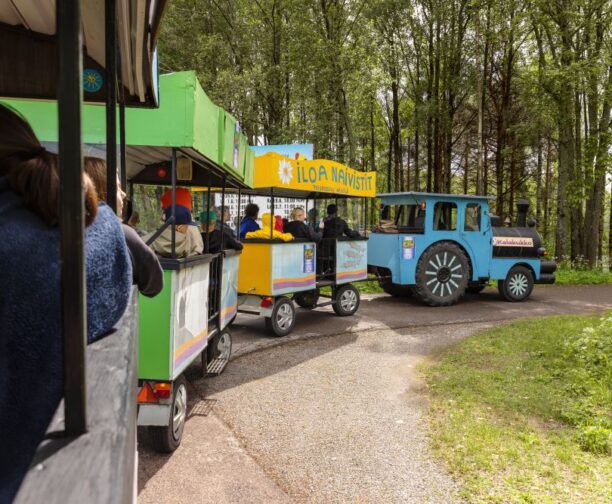 Matkan varrella kurkitaan Varkauden suuria tehtaita, korkeita piippuja ja jännittäviä teollisuusrakennuksia. Ohi vilahtelevat myös vihreät puistot, kimmeltävät vedet ja kauniit maisemat. Tämä ei olekaan ihan tavallinen junamatka, vaan pieni kesäinen seikkailu täynnä ihmetystä, iloa ja Varkauden parhaita näkymiä.